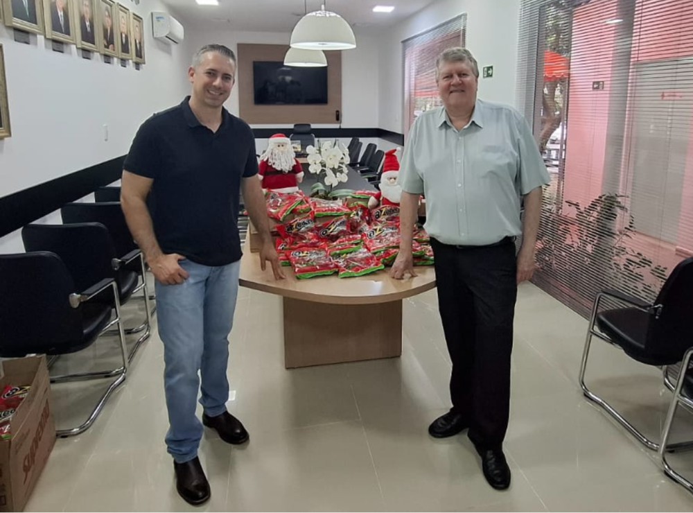 Essa semana, a Associação Comercial fez uma doação que já é tradição por aqui: a entrega de balas para o Papai Noel distribuir às crianças no Natal que está sendo preparado pela Prefeitura de Holambra, na Praça do Pioneiro. A foto com o prefeito Fernando Capato e o nosso diretor Ronaldo Graat registra esse momento. Foram doados 100 pacotes de balas. #Natalchegando